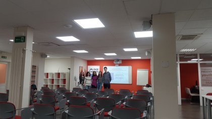 Esther Sestelo y los alumnos, antes de comenzar la clase magistral