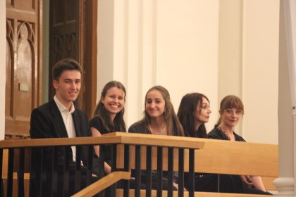La Basílica «La Milagrosa» y los intérpretes, antes de comenzar el acto