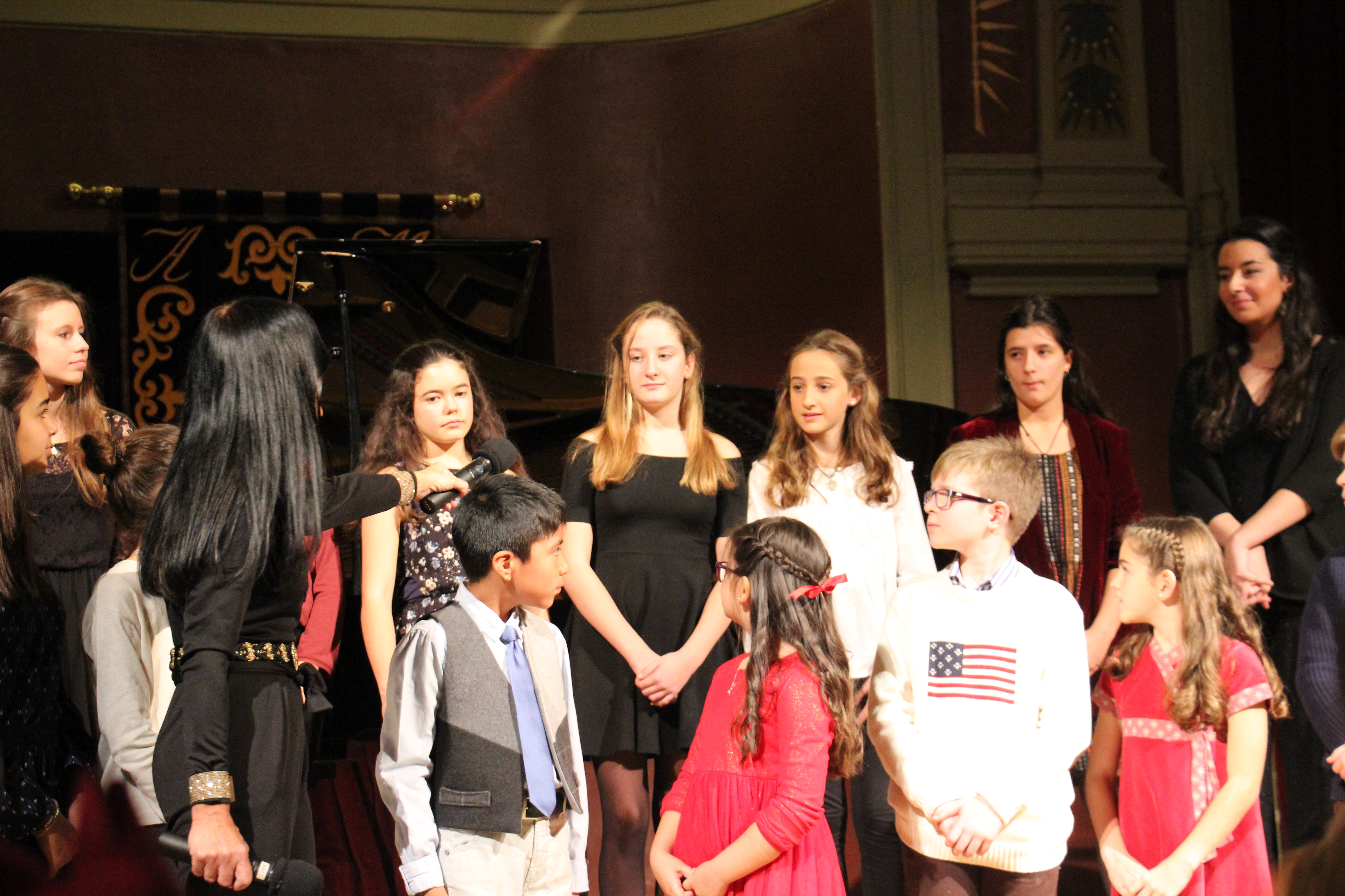 La profesora y los alumnos, explicando algunos contenidos antes del Concierto