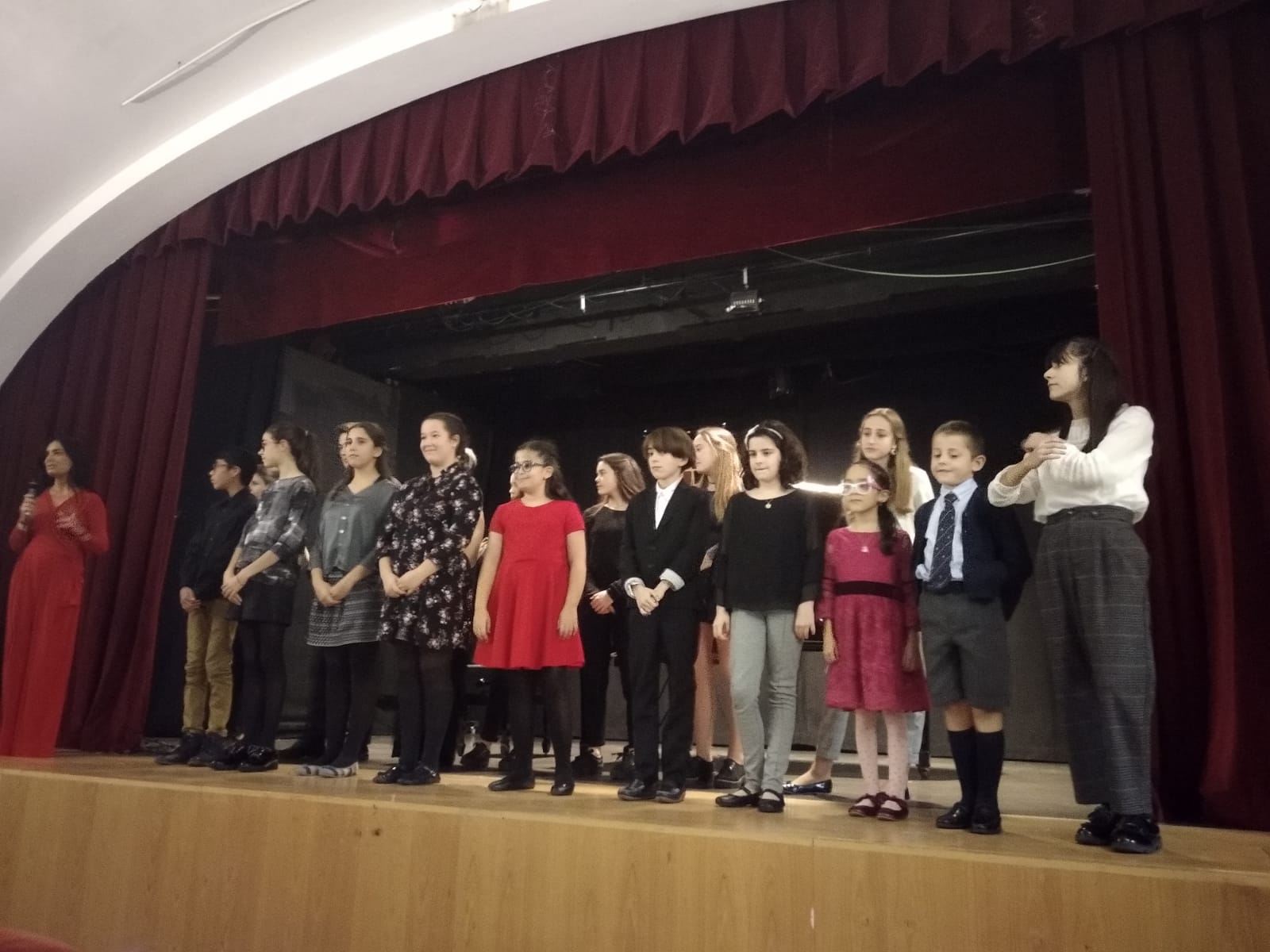 La profesora, presentando a los alumnos.