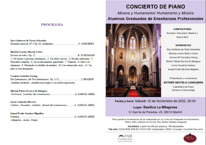 Concierto de Piano en la Basílica La Milagrosa, Madrid » Programa