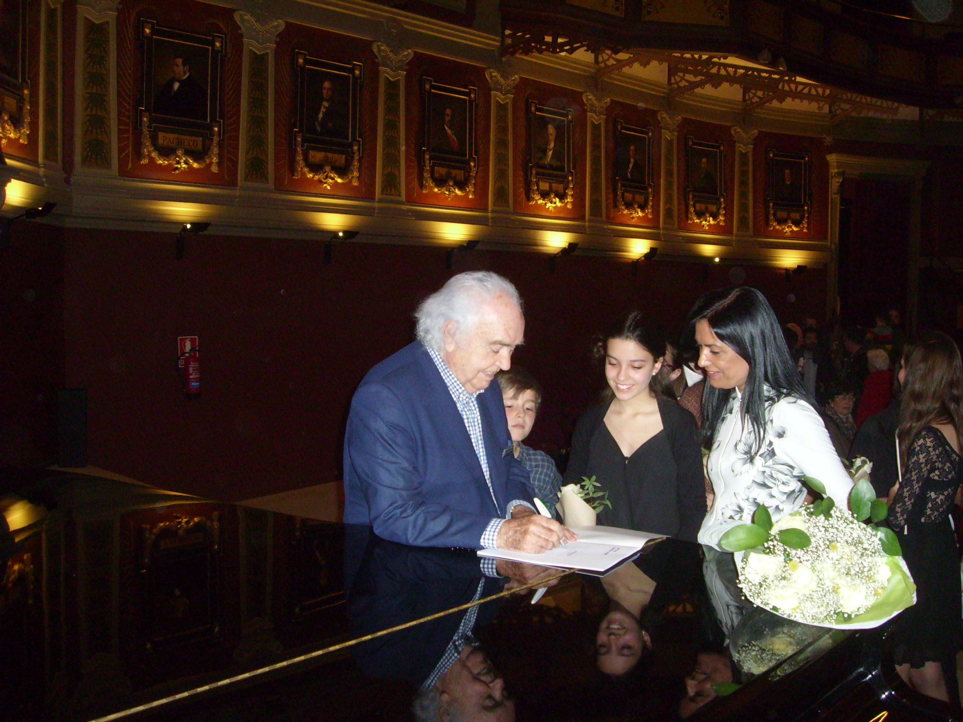 El Maestro, firmando y dedicando sus partituras a los alumnos