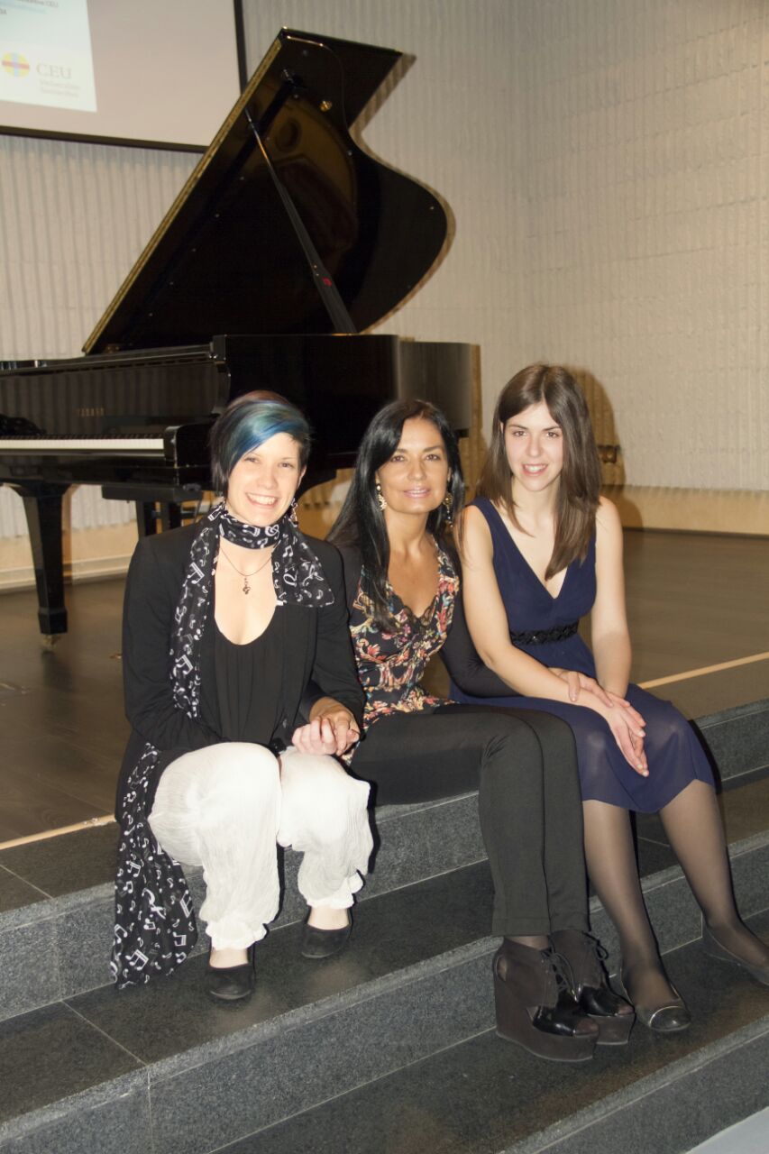 Las intérpretes, Julia García Mora y Daniela Álvarez Morales, junto a su Profesora, Esther Sestelo Longueria, antes de comenzar el Concierto.