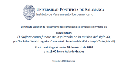 CONFERENCIA «EL QUIJOTE COMO FUENTE DE INSPIRACIÓN EN LA MÚSICA DEL SIGLO XX», EN LA UNIVERSIDAD PONTIFICIA DE SALAMANCA, EN EL INSTITUTO DE PENSAMIENTO IBEROAMERICANO
