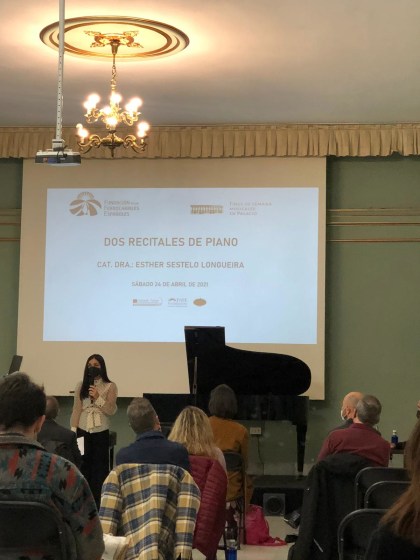 Presentación del Acto y de los intérpretes, y comentario de las obras por Esther Sestelo