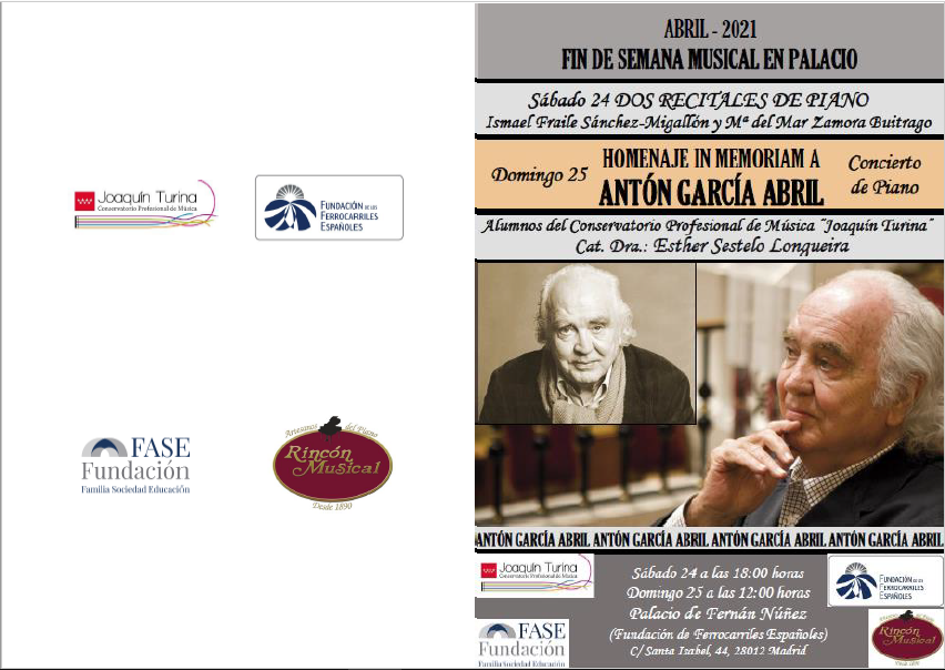Fin de Semana Musical en Palacio, Homenaje in Memoriam a Antón García Abril. Palacio de Fernán Núñez, Fundación Ferrocarriles Españoles, Madrid
