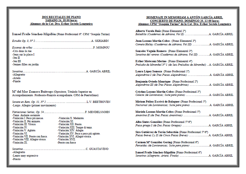 Fin de Semana Musical en Palacio, Homenaje in Memoriam a Antón García Abril. Palacio de Fernán Núñez, Fundación Ferrocarriles Españoles, Madrid