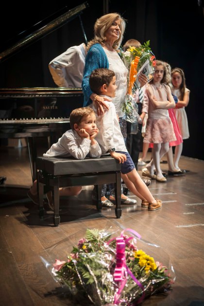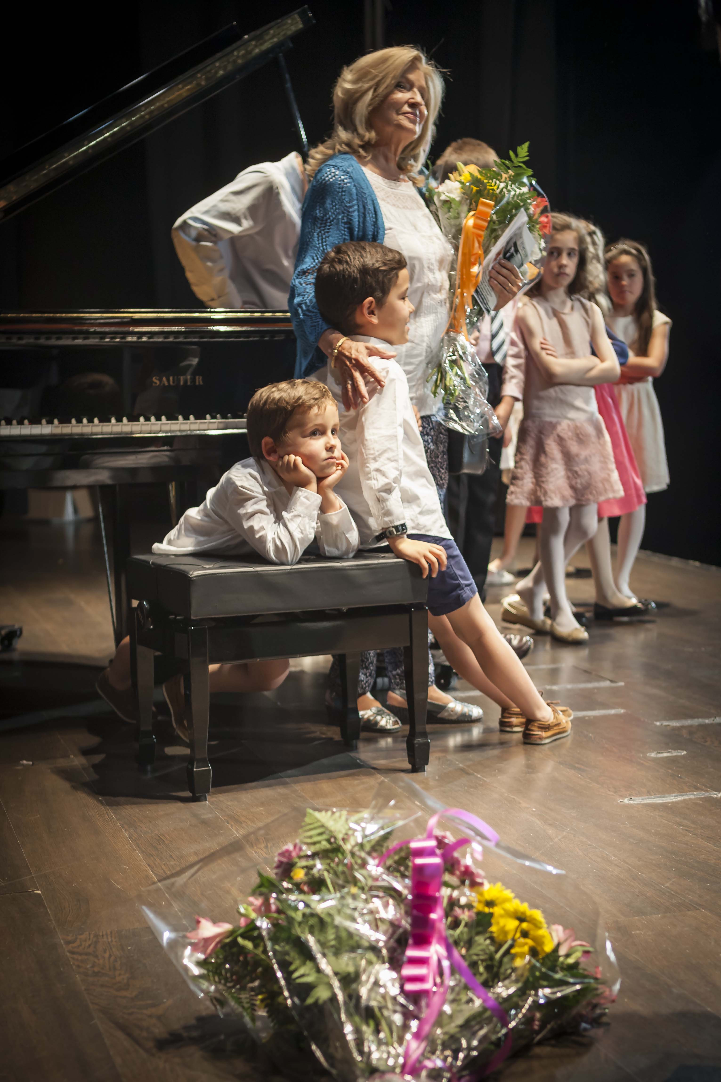 Áurea Ruiz, nietos y alumnos, escuchando al maestro