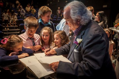 El maestro, firmando autógrafos