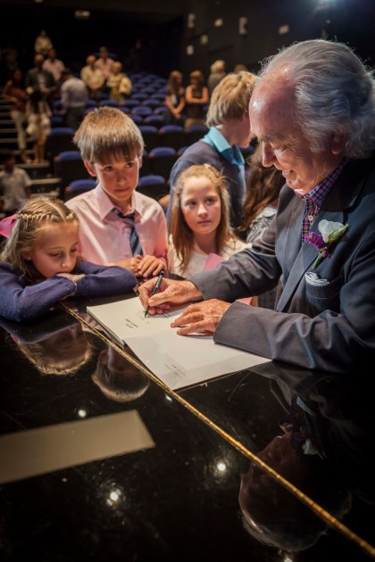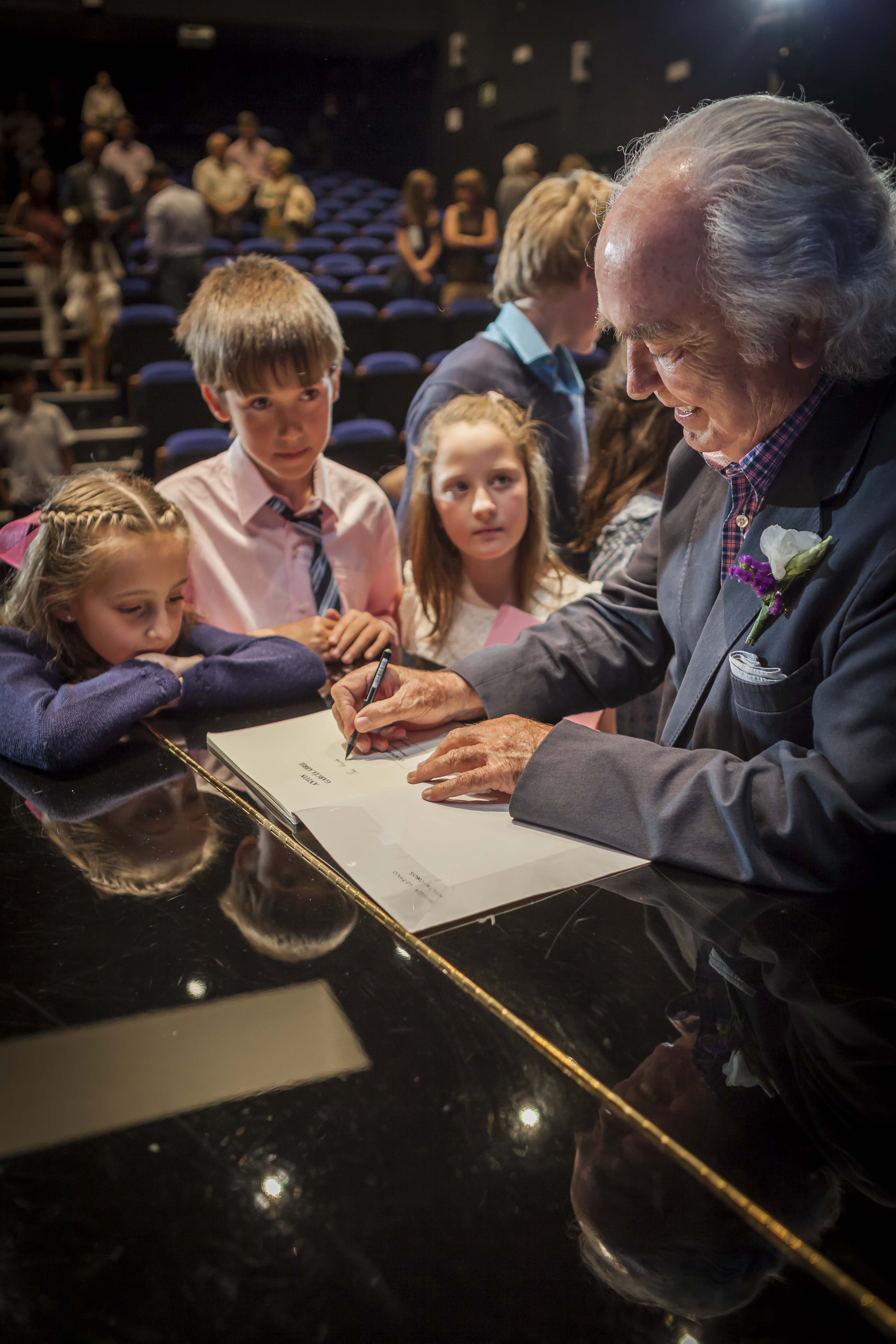 El maestro, firmando autógrafos