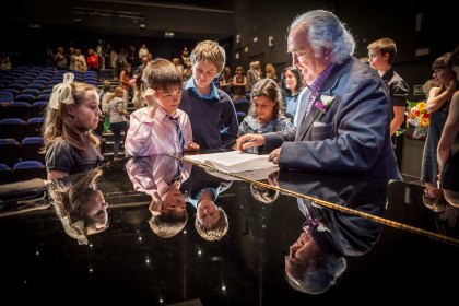 El maestro, firmando autógrafos