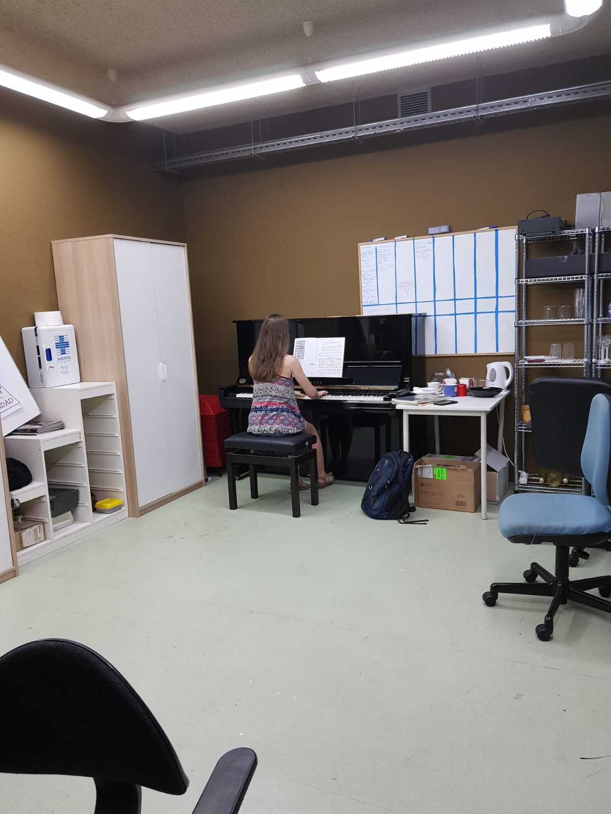 En las cabinas, estudiando.