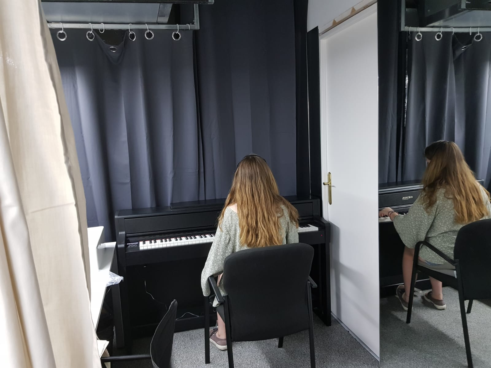 En las cabinas, estudiando.