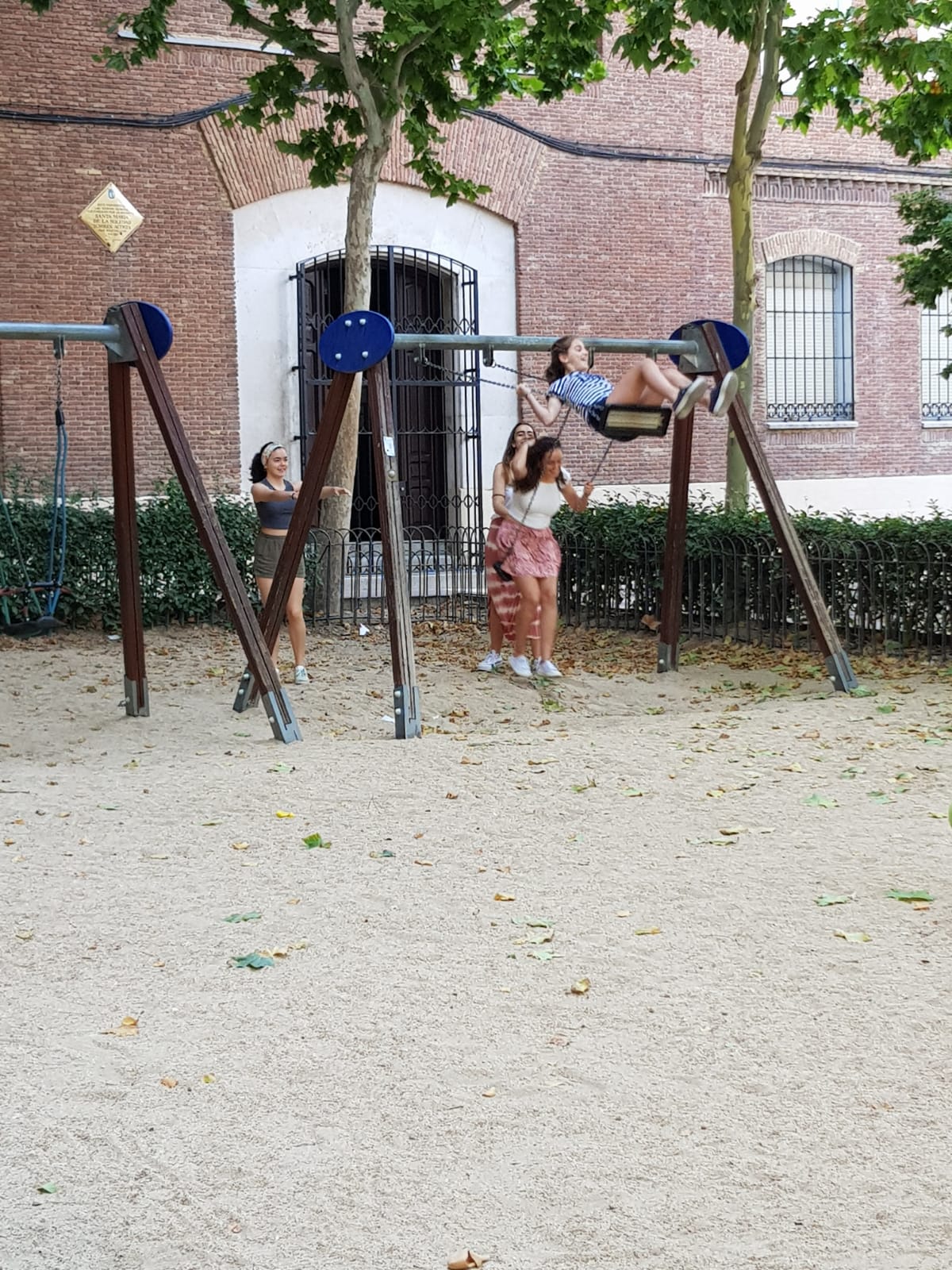 Jueves día 4. Parada en unos columpios. Nos dirigimos a uno de los Museos del Metro de Madrid.