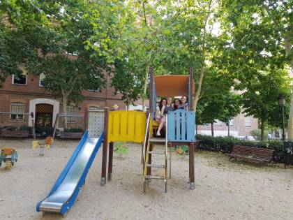 Jueves día 4. Parada en unos columpios. Nos dirigimos a uno de los Museos del Metro de Madrid.