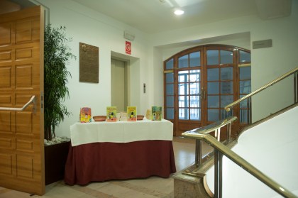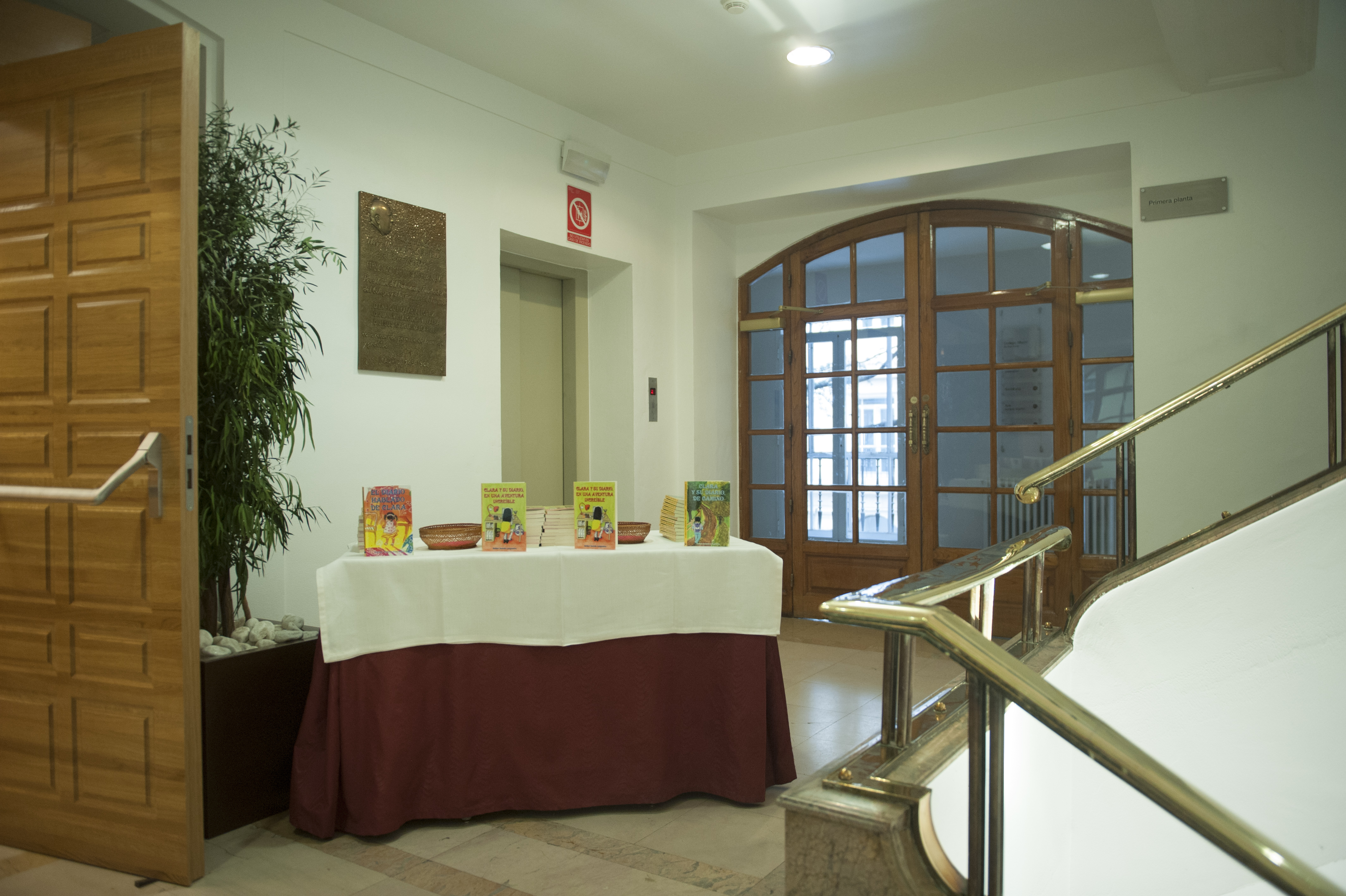 Presentación de » Clara y su diario, en una aventura increíble», en el Colegio Mayor Universitario San Pablo de Madrid » a la entrada del Salón de Actos