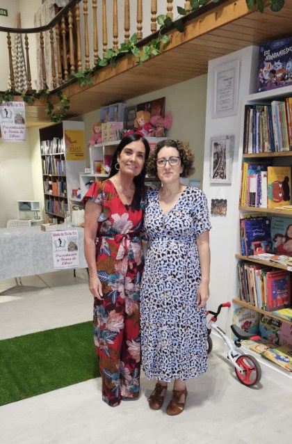 Esther Sestelo, con la propietaria y directora de la librería, Ana Porto, antes de comenzar el acto