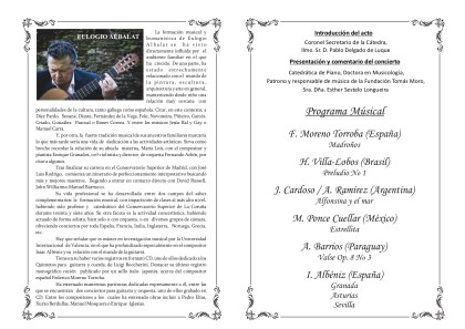 Recital de Guitarra por Eulogio Albalat en las Jornadas de la FTM, Humanismo y Sevilla como puerta al Nuevo Mundo » Programa del Concierto