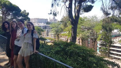 Alrededores del Templo, Paseo de Rosales contemplando las maravillosas vistas del Palacio Real y la Almudena, y degustando nuestro aperitivo