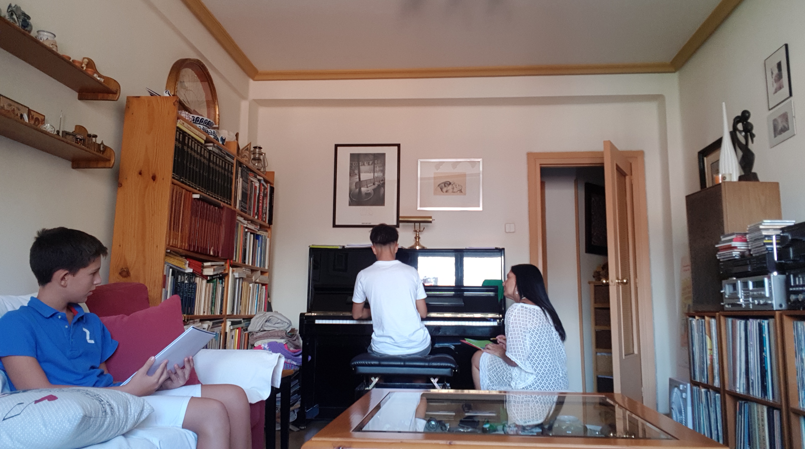 Durante las Clases Magistrales de la mañana. Al piano, Alberto