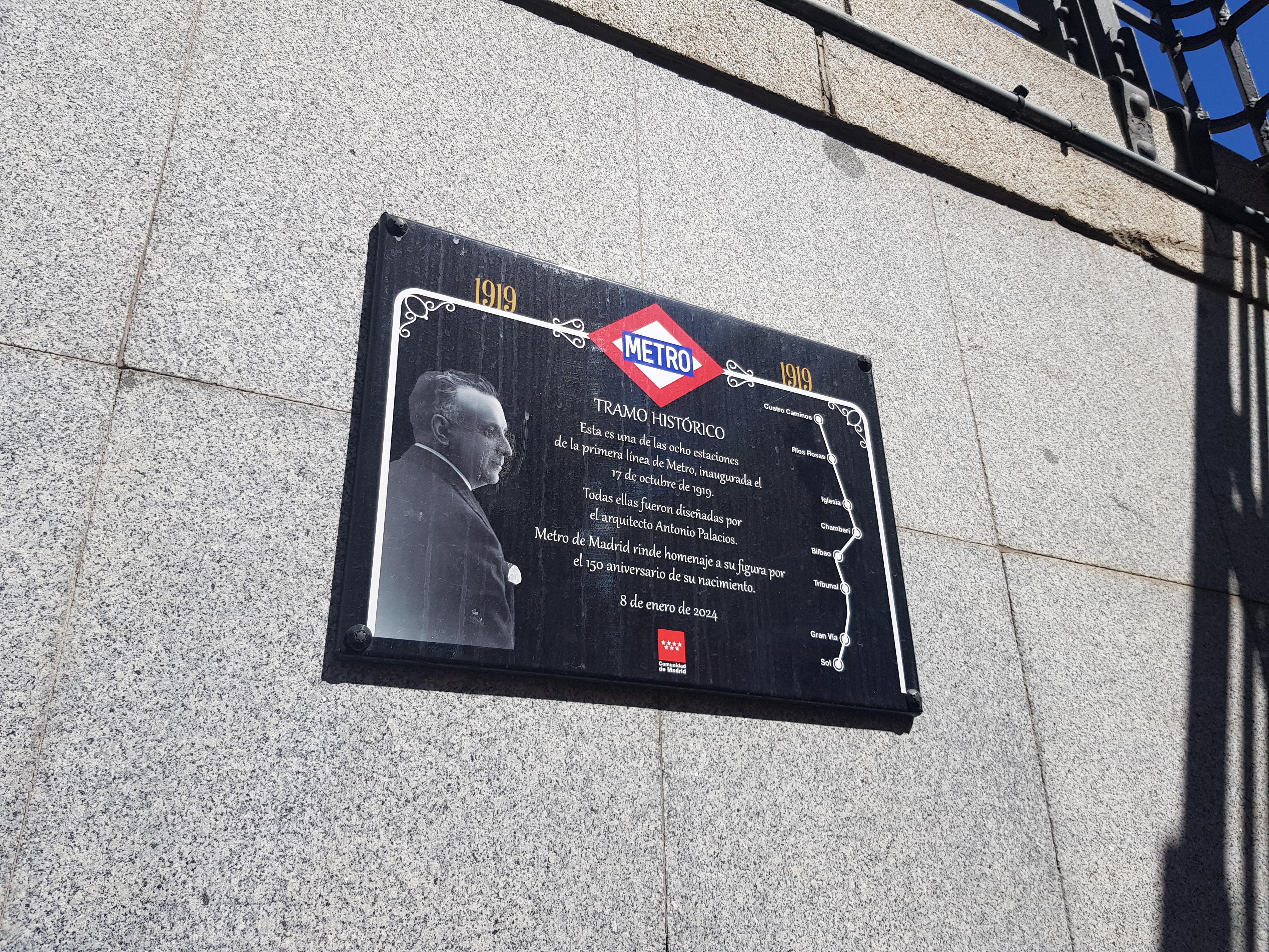Placas representativas del gran arquitecto español Antonio Palacios, en muchas de las estaciones del Metro de Madrid