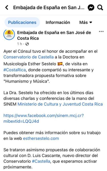 Nota de prensa de la Embajada de España en San José de Costa Rica