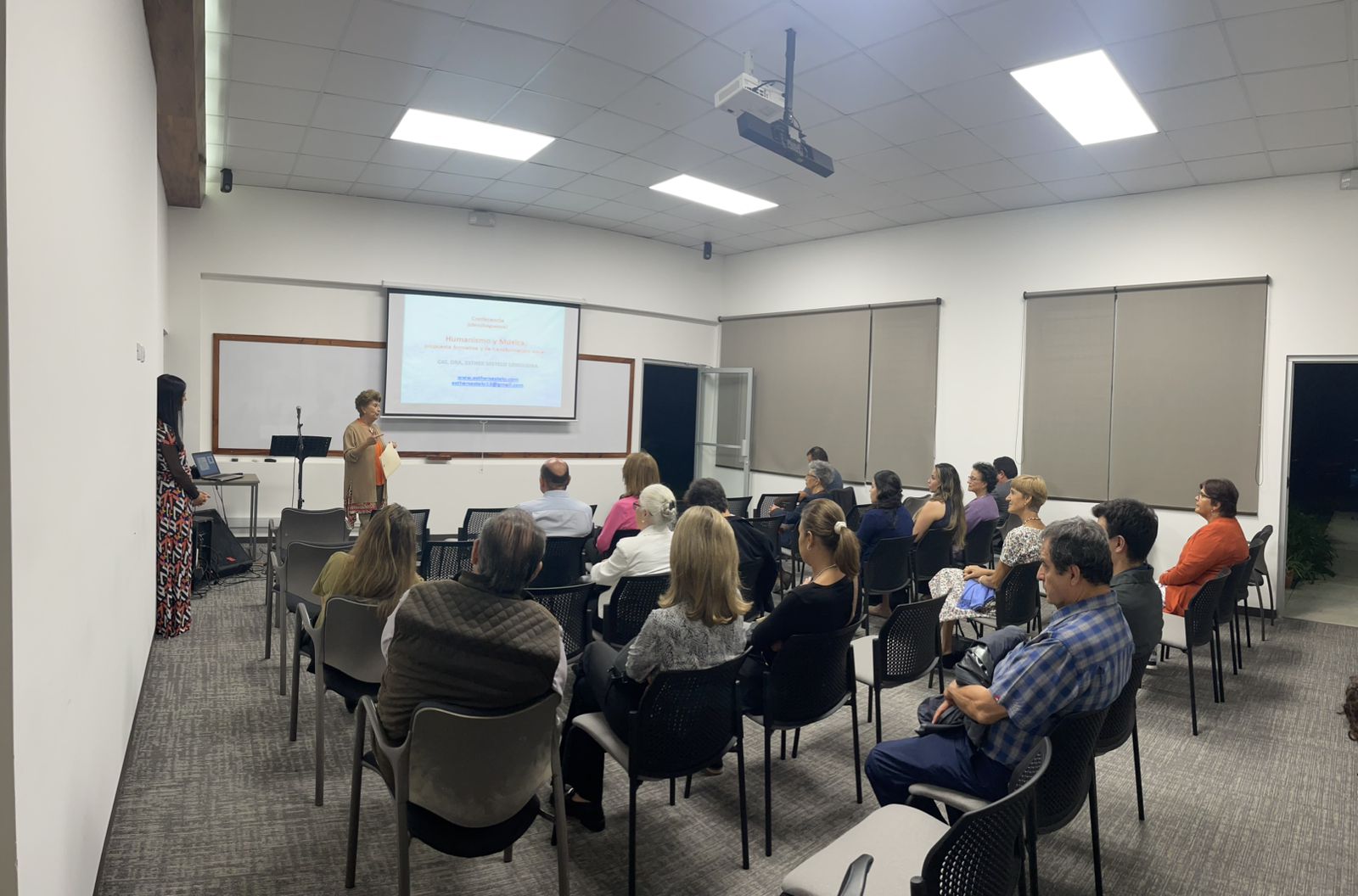 Marjorie Barzuna, presidenta de Virtus, presentando a Esther Sestelo
