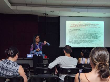 Martes 5, en la sede del SINEM -Sistema Nacional de Educación Musical- del Parque de la Libertad (Desamparados, provincia de Cartago), durante la conferencia para los profesores titulada «El Valor del Humanismo de la Música: formación, transformación y herramienta de vida»