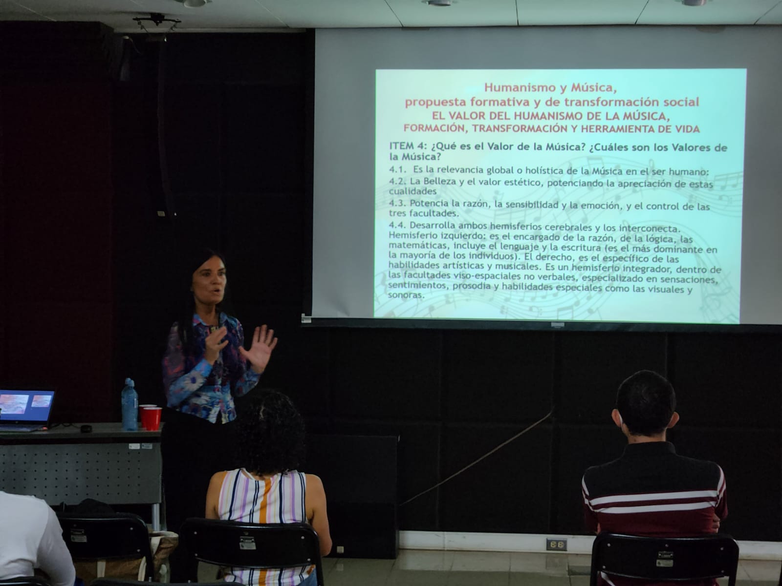 Martes 5, en la sede del SINEM -Sistema Nacional de Educación Musical- del Parque de la Libertad (Desamparados, provincia de Cartago), durante la conferencia para los profesores titulada «El Valor del Humanismo de la Música: formación, transformación y herramienta de vida»