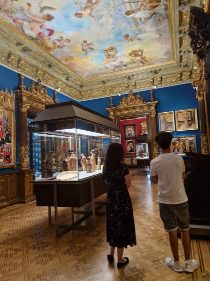 Miércoles, 3 de septiembre: Tercer día del Curso. Esta mañana tuvimos salida. Paseo por el Serrano de las Embajadas hasta el Museo Lázaro Galdiano: una maravilla; los alumnos quedaron impresionados. Después, aperitivo y volvimos paseando por la embajada de Japón y visitamos el precioso santuario de Schoenstatt, pasando por el CSIC y la Iglesia del Espíritu Santo, obra del arquitecto Fisac. Y ya, a comer a casa, siesta y tarde de trabajo, merienda, seguimos trabajando, cena y juegos. Trabajamos y disfrutamos.